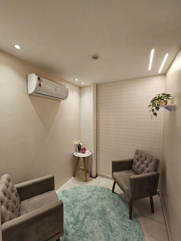Espaço aconchegante e acolhedor, indicado para uma conversa mais próxima, atendimentos em geral.